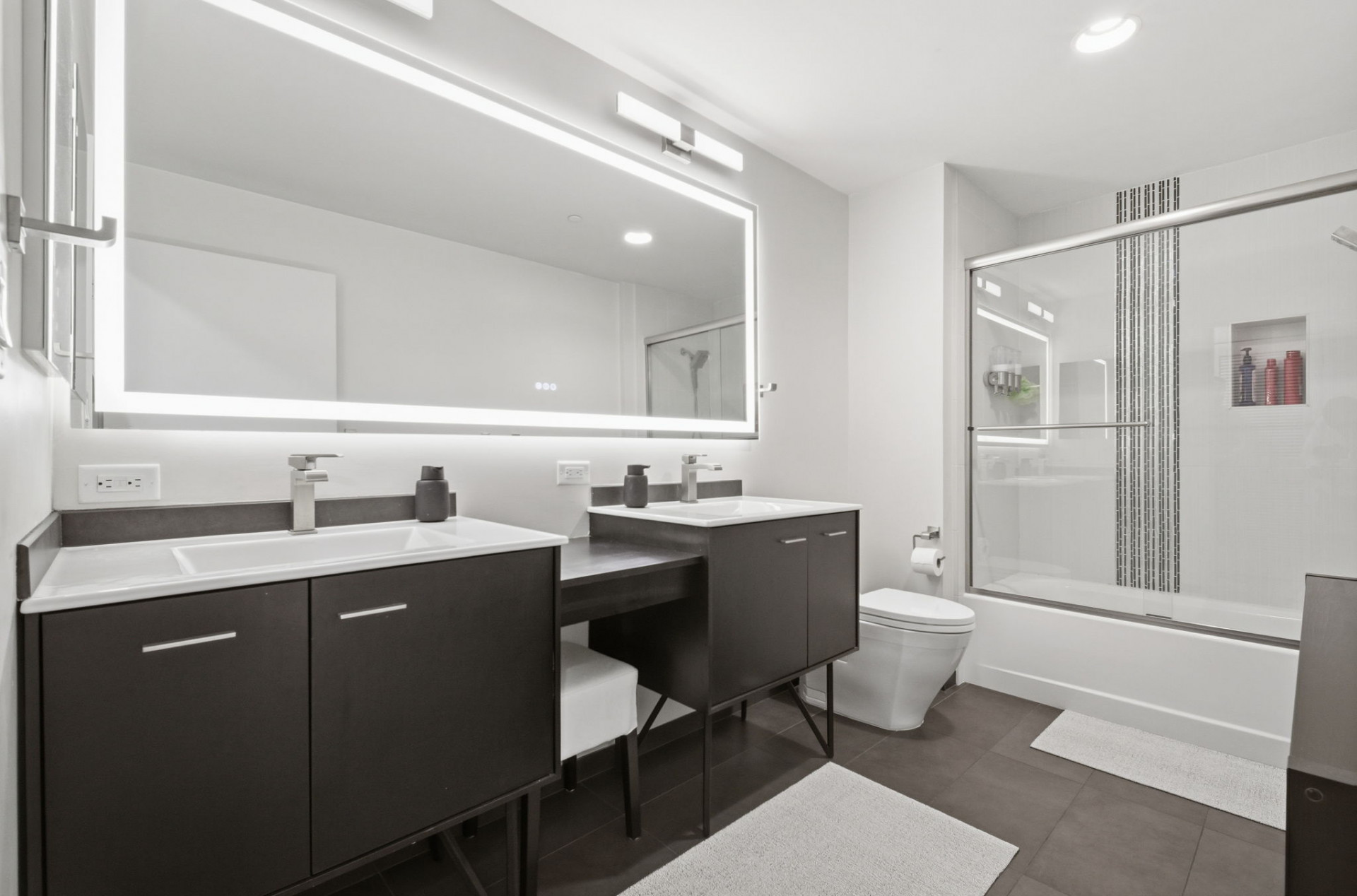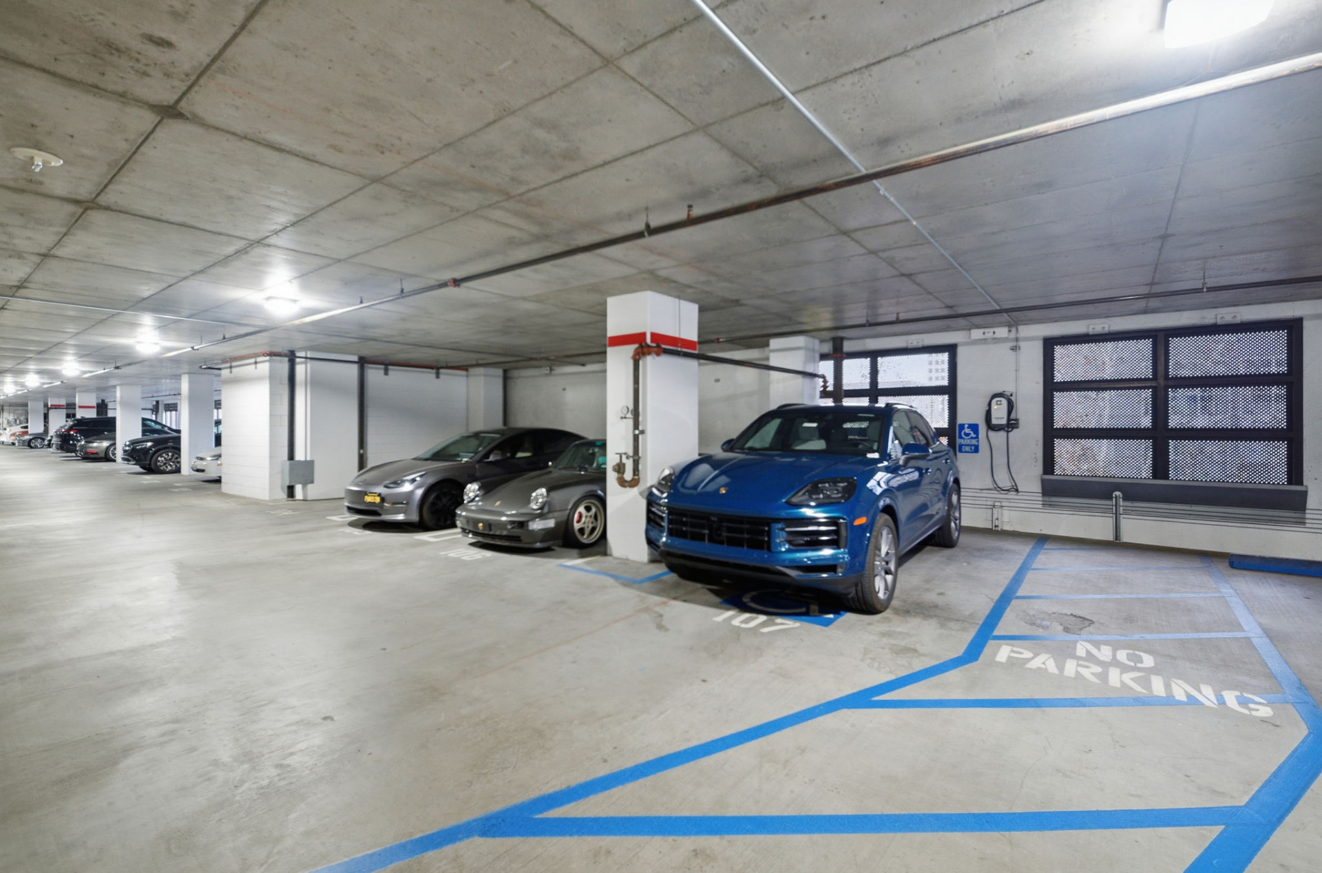 The designer kitchen is crafted for entertaining, featuring Italian cabinetry with slide-out shelving, quartz waterfall countertops, and premium Miele appliances, including an induction cooktop, convection oven, and integrated refrigerator. The thoughtfully designed floor plan includes custom California Closets, two deeded parking spaces on the same level with an EV charger, balcony, and access to The 88s hotel-style amenities: pool, spa, BBQ areas, fitness center, billiard room, grand lobby, and a 21st-floor observation terrace with panoramic city views.